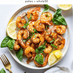 This recipe for easy garlic basil sautéed shrimp is a paleo and gluten free friendly protein dish that is incredibly versatile and incredibly delicious. Healthy, ready in less than 20 minutes, and full of flavor!